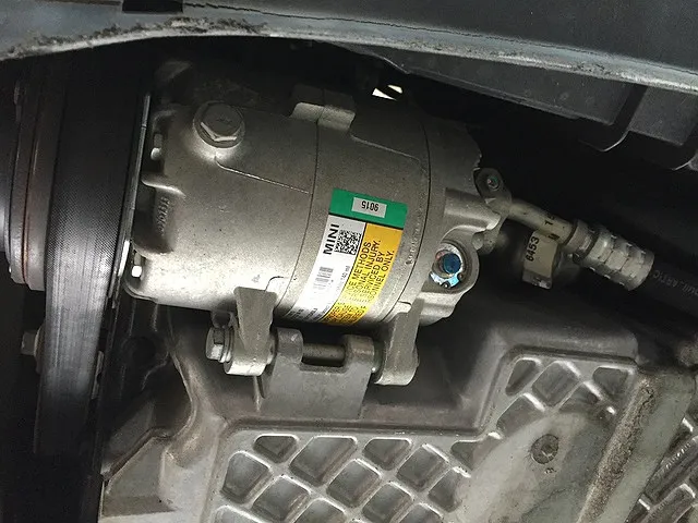ミニのエアコンコンプレッサーは夏場に動作不良を起こし故障することがございます。