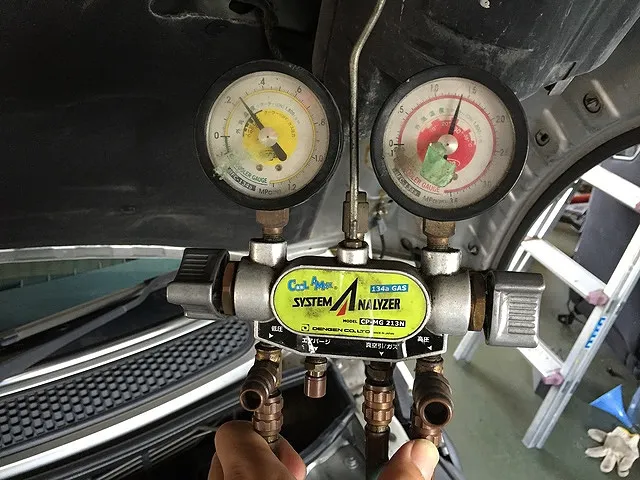 エアコンパイプの洗浄や真空引きを行いエアコンガスを規定量入れてエアコンが効くようになりました。