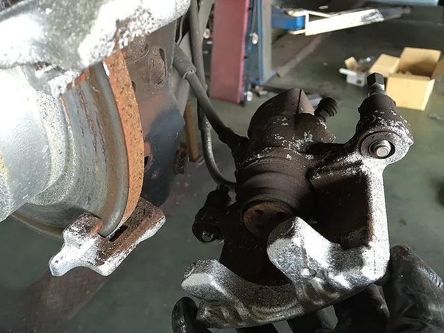(ブレーキパットも擦り減ってしまって危険ですのでブレーキパットも交換いたします。