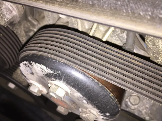 ●BMWR50BMWミニ水漏れクーラント漏れによりオーバーヒート故障修理作業、バイブレーションダンパー、クランクプーリ―、ベルト交換作業