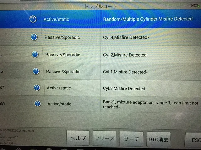 ワーゲン専用の故障診断機で点検いたします。エンジン点火のコイルの不良とホースの割れからのエア吸いにより調子が悪くなっておりました。