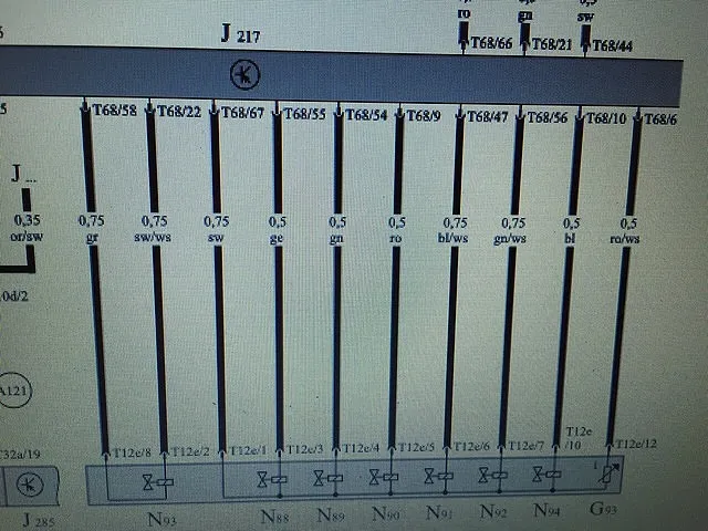 ソレノイドバルブやバルブボディ、オートマと配線ハーネスは問題ありませんでした。配線図を確認してオートマのコンピューターとの全体図を確認して配線1本1本点検していきます。