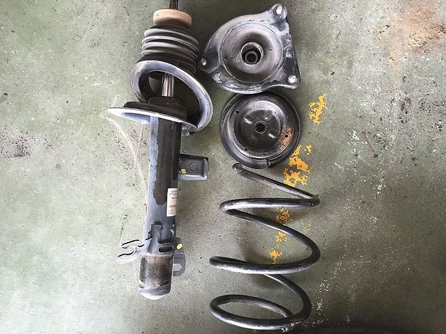 アッパーマウントのガタツキやブッシュの切れ、へたり摩耗も点検いたします。アッパーマウントもベアリング部分のガタツキが大きいので交換修理いたします。ハンドリングが重たくなったり音が出てきましたらアッパーマウントが交換時期に来ている可能性がありますので早めの点検交換をお勧めいたします。
