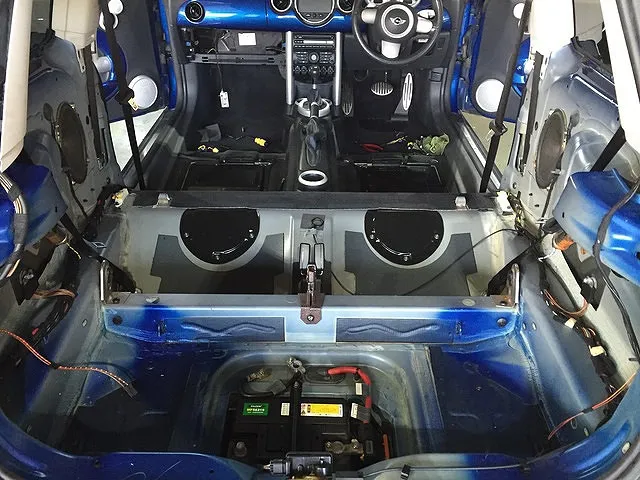 兵庫県姫路市よりご来店いただきましたブルーのR53クーパーSです。各部点検作業とオイル交換、天井の剥がれや垂れ下がりにより天井の張替作業をしてまいります。ミニクーパーや欧州車に多い定番の修理作業です。
