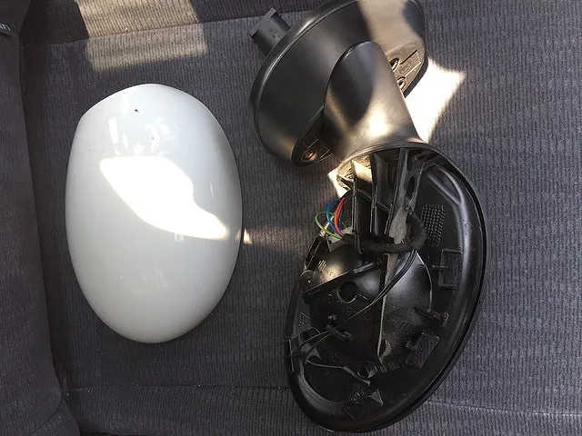 ドアミラーを分解ミラーカバーを分解しまして内部修理、部品の交換をしまして無事修理交換完了いたしました。