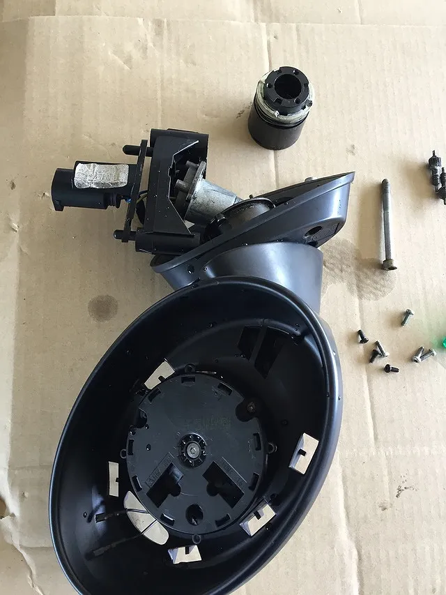 ドアミラーの内部は配線や内部ギアなど細かい部品が多数入っておりますので1つでも破損してしまうと格納不良や格納時のガタガタ音の原因になります。