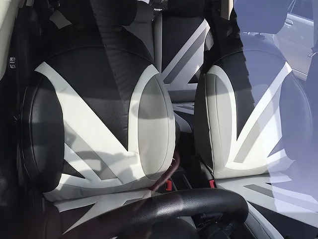 CABANAのシートカバーの取付をいたします。MINIシートといえばCABANAのシートカバーですね。専用設計ですのでフィット感抜群ですし質感やデザイン、クオリティなども間違いないですね。
