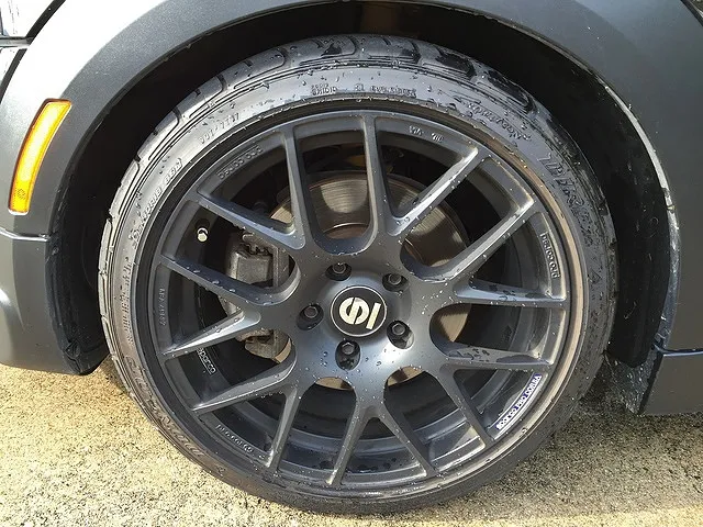 R60ミニクーパーSクロスオーバーに装着してあるスパルコのホイールがかっこいいです。艶消しの黒色で足元が引き締まりますね。