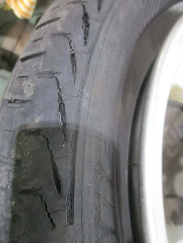 タイヤのすり減り、破れはパンクや事故の原因になります。