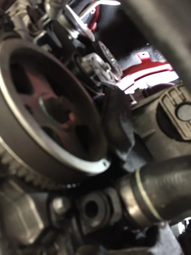●BMWR50BMWミニ水漏れクーラント漏れによりオーバーヒート故障修理作業、バイブレーションダンパー、クランクプーリ―、ベルト交換作業