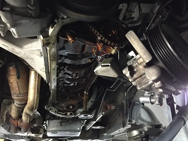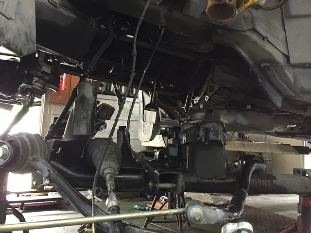 BMW E53のオイルパンの脱着は足回り、アクスルやメンバーやデフなど全部取外しをしないといけなく非常に大変です。