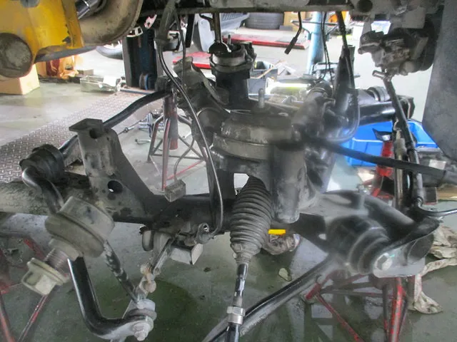 BMW X5より取り外したアクスルメンバーになります。取り外したついでに綺麗にして組み込んで参ります。同時交換でブッシュやゴム類なども交換しておきますと工賃もお安くなり経済的ですのでオススメです。