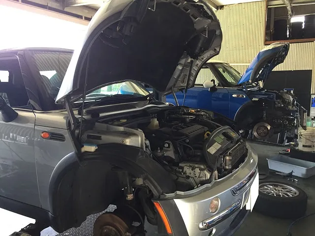 輸入車BMWミニの車検時は分解点検、消耗品の交換、油脂類オイルの点検交換を行います(車検時はエンジンオイルはサービスで交換させていただきます)代車もご用意いたしますのでお気軽にご相談下さい。