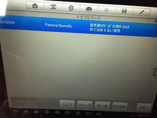 ワーゲンクロスポロのエアバックランプの定番修理のエアバックスイッチの故障になります。